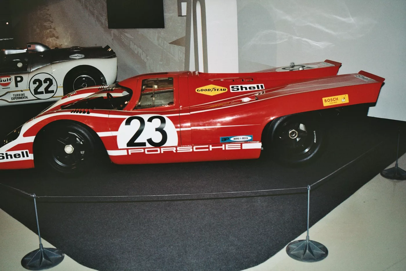 Eliminée par l’évolution du règlement à la fin de la saison 1971, la Porsche 917 avait néanmoins marqué son époque au point d’être désignée dans Motor Sport par un jury international de 50 spécialistes « the greatest racing car in the history » (la plus grande voiture de course de l’histoire). Pour crédibiliser pleinement cette rare distinction, les Porsche 917 se taillent la part du lion dans l’Exposition du Centenaire. Tout d’abord, celles que l’on attendait le moins, les 917 K (kurtz) victorieuses en 1970 (Richard Attwood–Hans Hermann) et en 1971 (Helmut Marko-Gijs van Lennep).