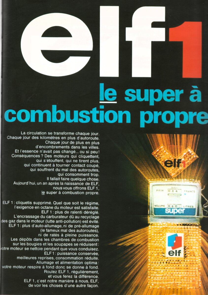 « Le nouveau carburant mis au point par Elf doit être au cœur de la publicité. Nous décidons, Choublay et moi de l’appeler Elf 1. Il sera le super à combustion propre, comme les ingénieurs Elf nous l’avaient décrit. »