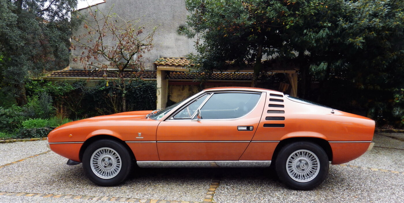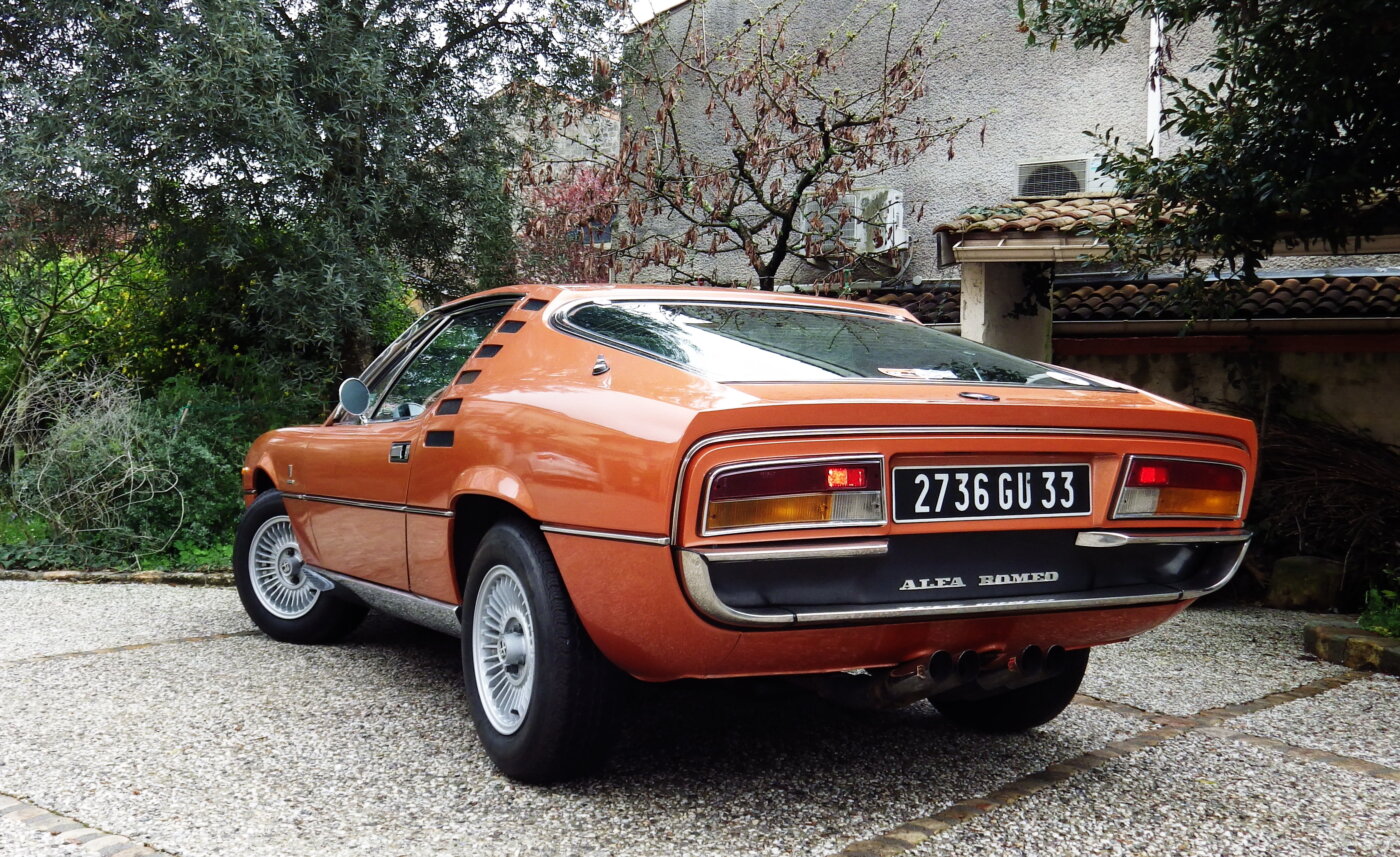 A l’origine le concept car Montreal était dérivé d’un coupé Giulia 1600. A partir de sa plate- forme, le bureau de style de Bertone avait dessiné une silhouette très réussie et avant-gardiste qui se caractérisait par ses fameuses paupières de phare striées et rétractables et ses impressionnants extracteurs d’air latéraux. Face à l’accueil enthousiaste, la firme au Quadrifoglio décida de la produire en série. Trois longues années furent nécessaires pour que la voiture définitive vit le jour et quatre pour que les premières soient enfin livrées aux clients. C’était trop ! Entre temps, la concurrence ne s’était pas endormie.