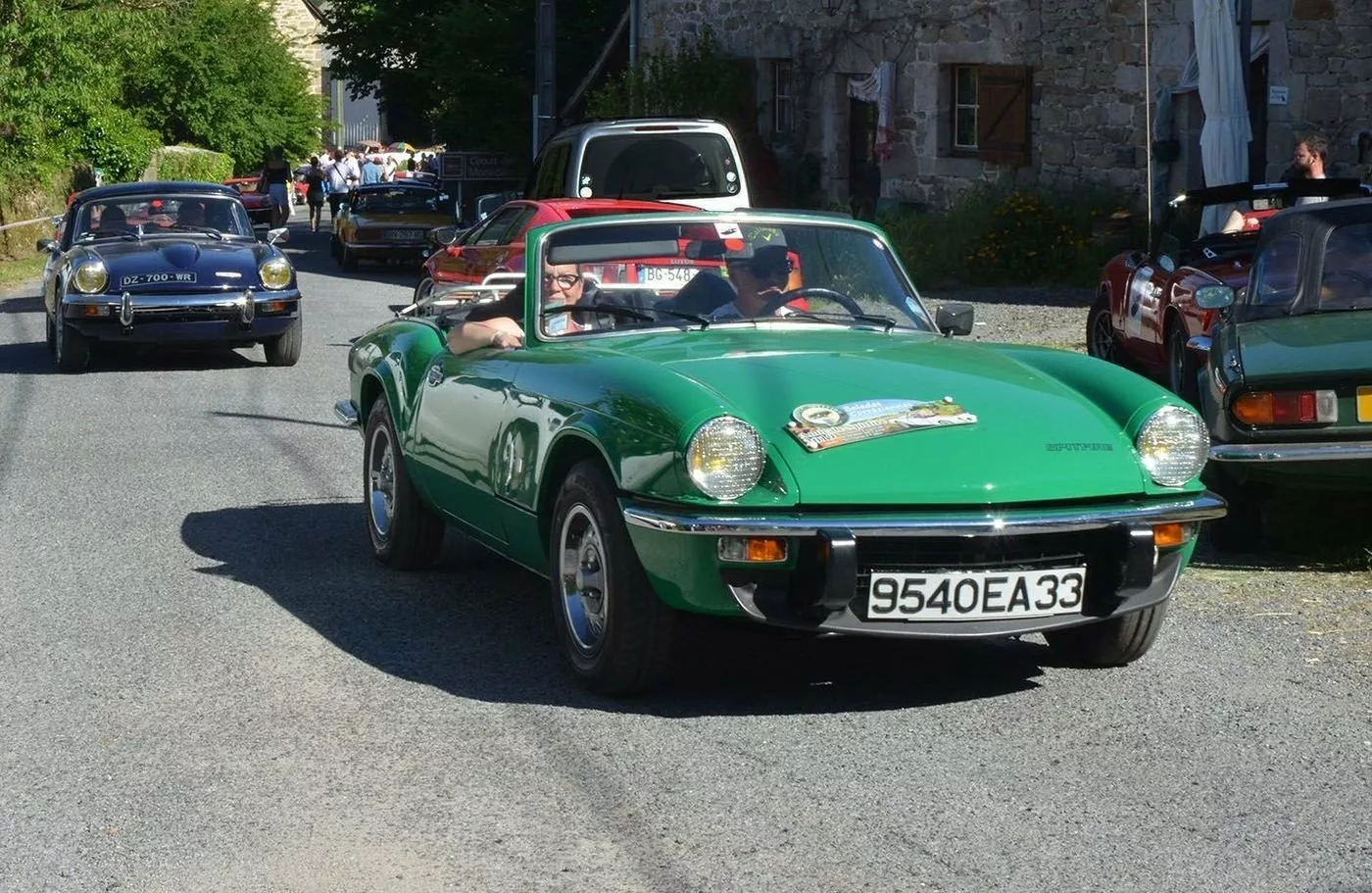 « J’ai une 1500 de 1978, une des dernières, donc, nous confie l’un d’eux. Pour moi rouler en Spit, c’est rouler cheveux au vent, dans des voitures qui font plein de bruit, qui ne vont pas très vite mais qui sont très joueuses. Surtout sur les petites routes de par ici, c’est vraiment génial » ! Un autre de renchérir : « Moi, j’ai une Mk3 blanche de 1968. C’est une voiture fiable, si on s’en occupe. Qui peut avoir plein d’options. La mienne est d’origine. Elle n’a pas de roues à rayons. Je suis contre, je trouve que ça fait grandiloquent par rapport à la voiture. Vu l’âge que j’ai (rires), je les ai connues à l’époque. C’était pas « sport », c’était considéré comme des voitures de minets, ‘faut bien le dire, hein ? Le sport à ce moment-là, c’était la TR4. On montait là-dedans à cinq, avec trois à l’arrière les jambes qui pendent à la place de la capote ! De la frime, quoi ! C’était essentiellement ça. C’était plus Saint-Trop’ les cheveux dans le vent que Montlhéry ».