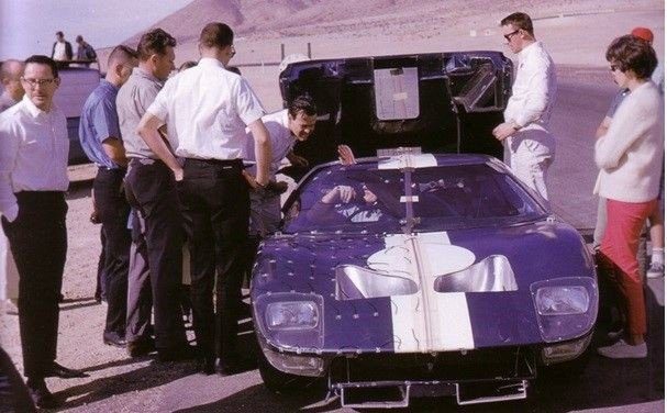 Immédiatement, on fit appel à un pilote peu connu, un certain Tom Payne, pour faire rouler la voiture et lui « faire faire des miles ». Celui-ci fut favorablement impressionné, ce qui convainquit Roy Lunn que l’on pouvait tenter des essais plus sérieux sur une des pistes d’essais de Ford, à Romeo dans le Michigan. Pour cela, on fit venir Ken Miles et Phil Remington de Los Angeles. Les deux hommes prirent les choses en main. Des ajustements furent opérés aux suspensions, et Ken Miles se mit à aller de plus en plus vite. Il réalisa un tour à la moyenne de 201,5 miles, et dans la ligne droite il atteignit 210 miles (325 kilomètres/heure). Une chose était sûre : la voiture était rapide. Quand on demanda à Tom Payne, qui faisait partie de l’équipe, quel était le régime moteur sur le banking, il répondit qu’il était tellement effrayé par la vitesse qu’il restait les yeux fixés sur la piste, et qu’il avait autre chose à faire que regarder le compte-tours. A la fin de la journée, quand toute l’équipe se réunit dans l’hôtel pour faire le point de la situation (le fameux “debriefing”), Ken Miles rendit son verdict : « c’est la voiture que je veux pour Le Mans. »