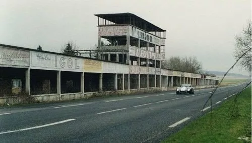 Je devrais piaffer d’impatience et exulter de joie en arrivant sur le circuit de Reims en ce petit matin de février 1994. Ben non : il fait un temps à hiberner au fond d’un troquet cosy devant un thé chaud (il est un peu tôt pour la mirabelle) et dans ces conditions, la triste découverte des ruines du circuit de Reims-Gueux n’incite guère à l’optimisme béat. Pierre Gary gare son Opel devant les stands et hume, maussade, la bruinasse qui achève de donner à l’endroit un joyeux petit air « post guerre nucléaire ».