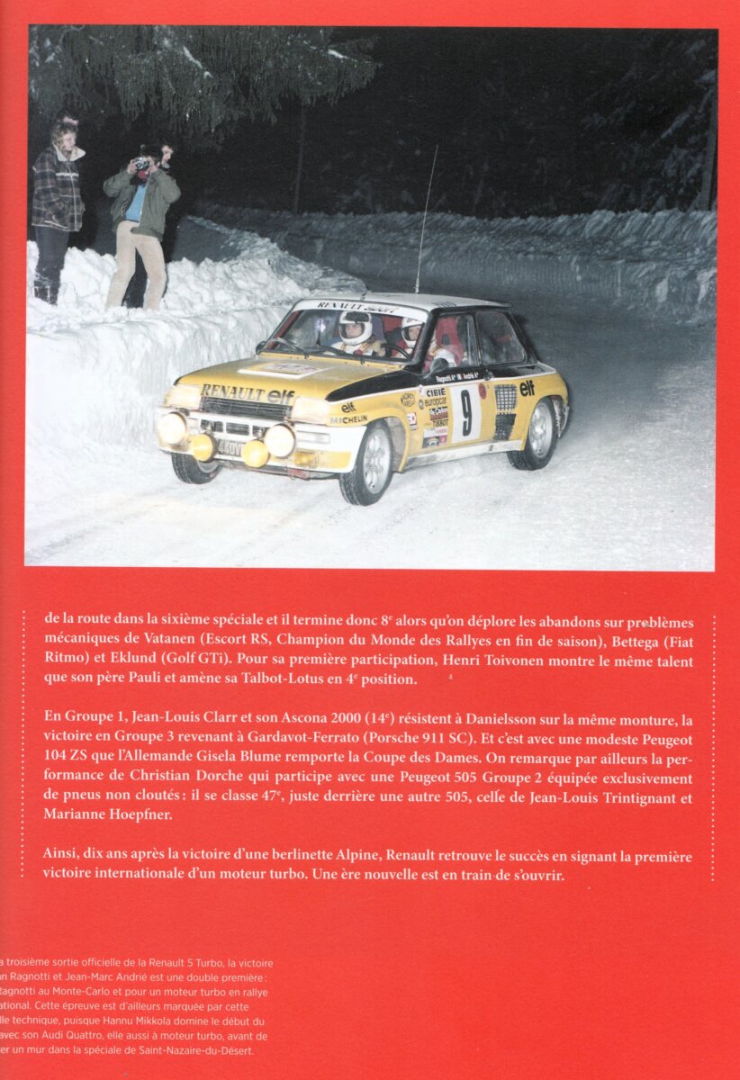 « Le Rallye Monte-Carlo est le plus difficile et le plus complexe qui soit », indiquait en 1983 Patrick Landon, alors directeur sportif de Renault Sport. Internationalement renommé grâce à son départ de plusieurs villes d’Europe, il s’est rendu célèbre par des spéciales légendaires, ces sections chronométrées de vitesse pure, de l’Ardèche aux Alpes du Sud, au plateau du Burzet battu par le vent et le col de Turini franchi de nuit sous les flashs des spectateurs. Au Monte-Carlo, le classement pouvait être bouleversé à tout moment car pilotes, copilotes, mécaniciens et patrons d’écurie allaient chercher au plus profond d’eux-mêmes les ressources qui pouvaient les mener à la victoire ».
