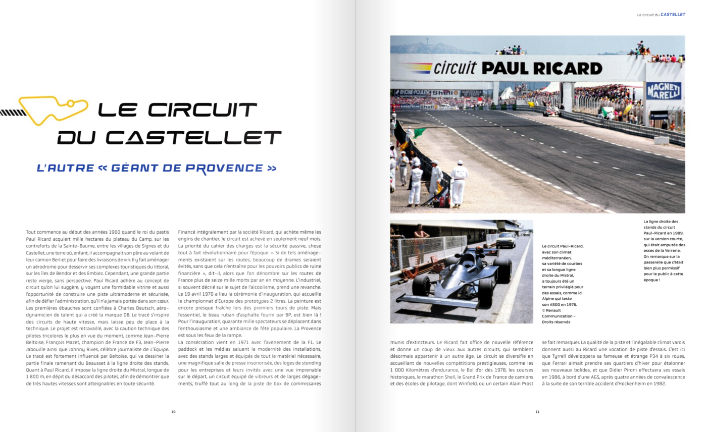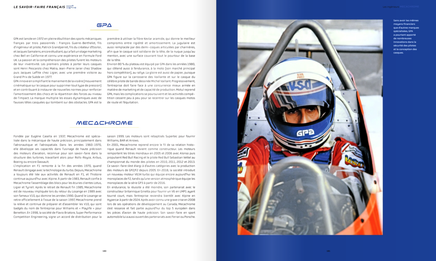 « Innovations, aménagements, défis, succès, exploits, échecs, tragédies : plongez dans l’aventure sportive, technologique et humaine de la France en Formule 1 ».