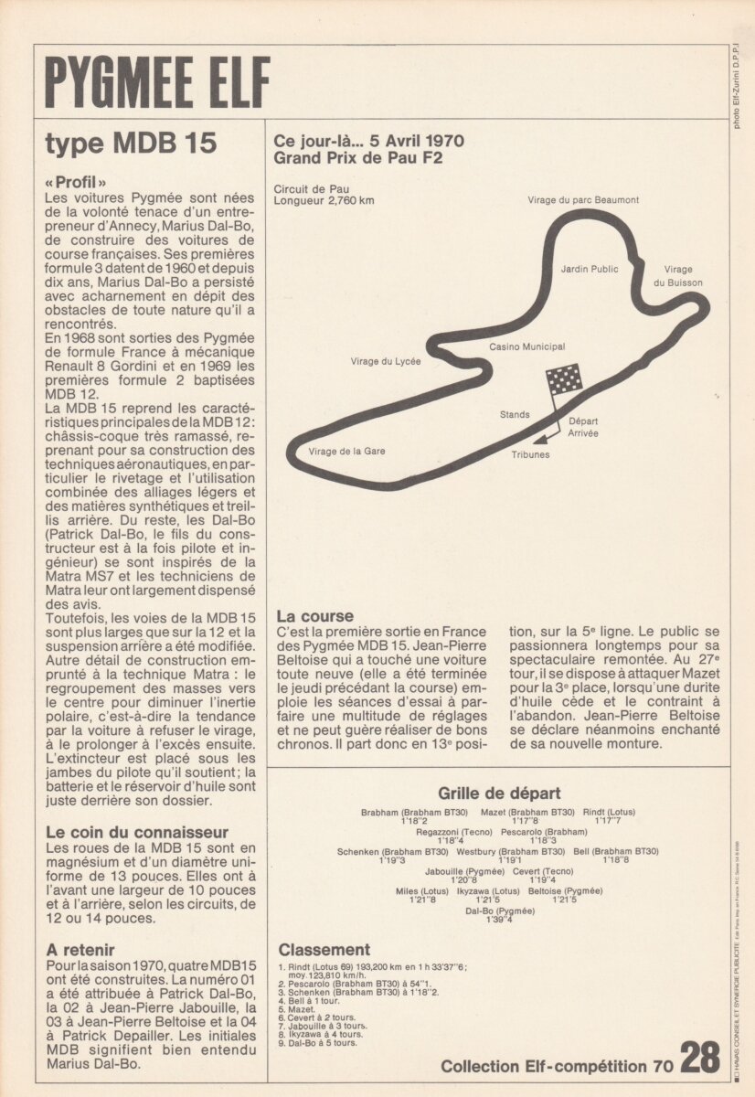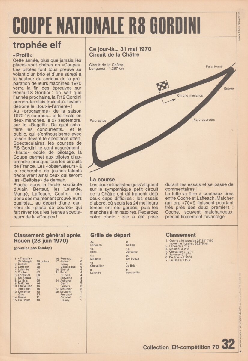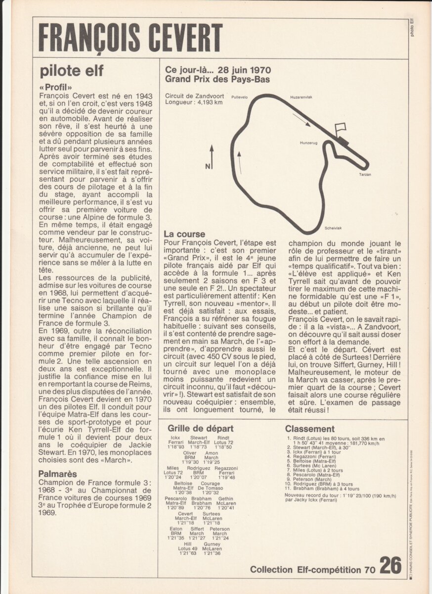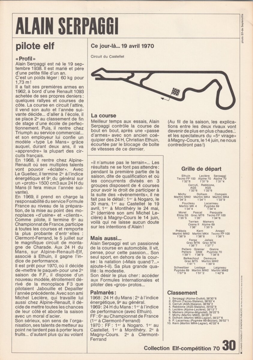 Pourquoi avons-nous choisi cette année 1970 pour lancer cette opération de promotion ? Quand l’aurions nous fait, si ce n’est maintenant ? Après trois années d’efforts, nous sommes gagnants. Jackie Stewart est champion du monde, Johnny Servoz-Gavin est champion d’Europe formule 2, Jean-Pierre Beltoise et Jean Vinatier, champions de France.