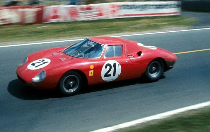 Après l’épisode de la tentative de rachat de l’écurie Ferrari en 1963, échouée suite (1) à l’obstination de l’«Ingegnere », le géant américain se résout à gagner avec ses propres voitures. Le premier challenge de 64 se solde par un échec, Ford trébuche, perdant ses trois voitures officielles sur bris de boîte de vitesses et incendie. Les belles rouges obtiennent leur cinquième succès consécutif cette année-là. Triplé à l’arrivée, la 275P de Guichet-Vaccarella triomphe devant les 330P de Hill-Bonnier et Surtees-Bandini.