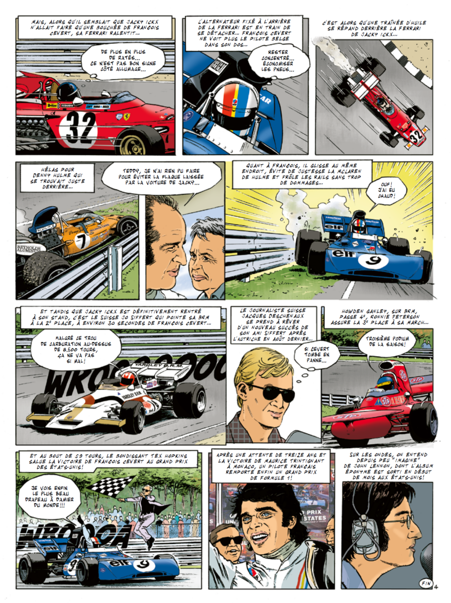 Deschenaux est un fidèle des circuits de F1, il a été également été témoin des Grands Prix courus par François Cevert, ce qui nous ramène à notre sujet du jour. Dans la réalisation de son album, Janvier a mouillé la chemise pour s’entretenir avec des professionnels contemporains du pilote de Neuilly.