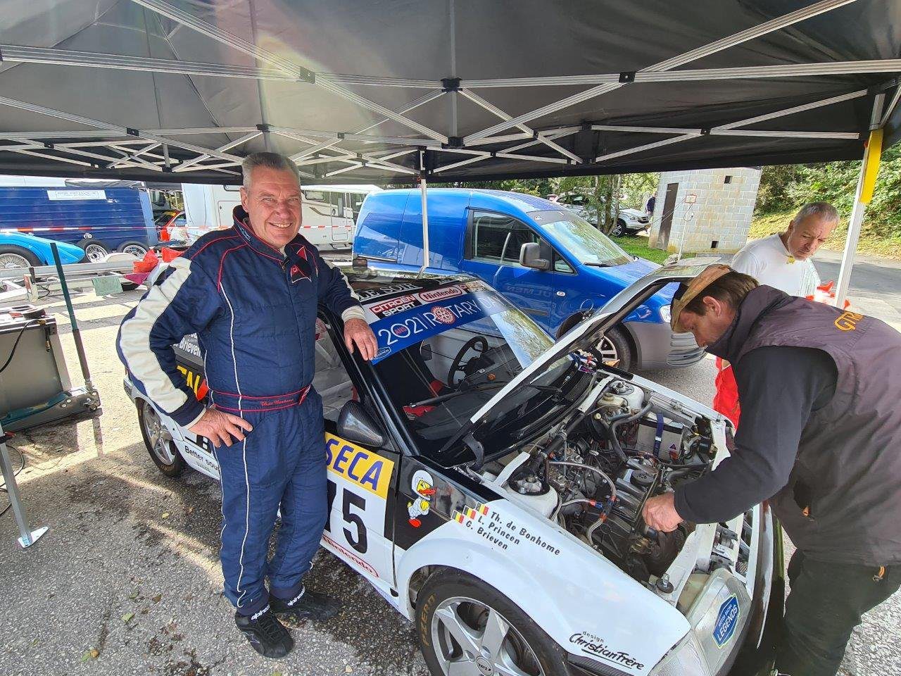 Autant on reconnait une Cobra ou une Lola T70, autant de loin, cet engin ?…. Austin Metro, Citroën AX ? Curiosité exotique ? … Il fallait voir. Thierry de Bonhomme en est le sympathique pilote. Evidemment elle est probablement la plus petite voiture de ces Spa 6 Hours, cette AX. Mais pas la moins capée ! Pouvez – vous imaginer qu’à la fin des années 80 elle a participé 5 fois aux 24 Heures de Spa ? Et classée 3 fois s’il vous plait, aux mains du même Thierry de Bonhomme.