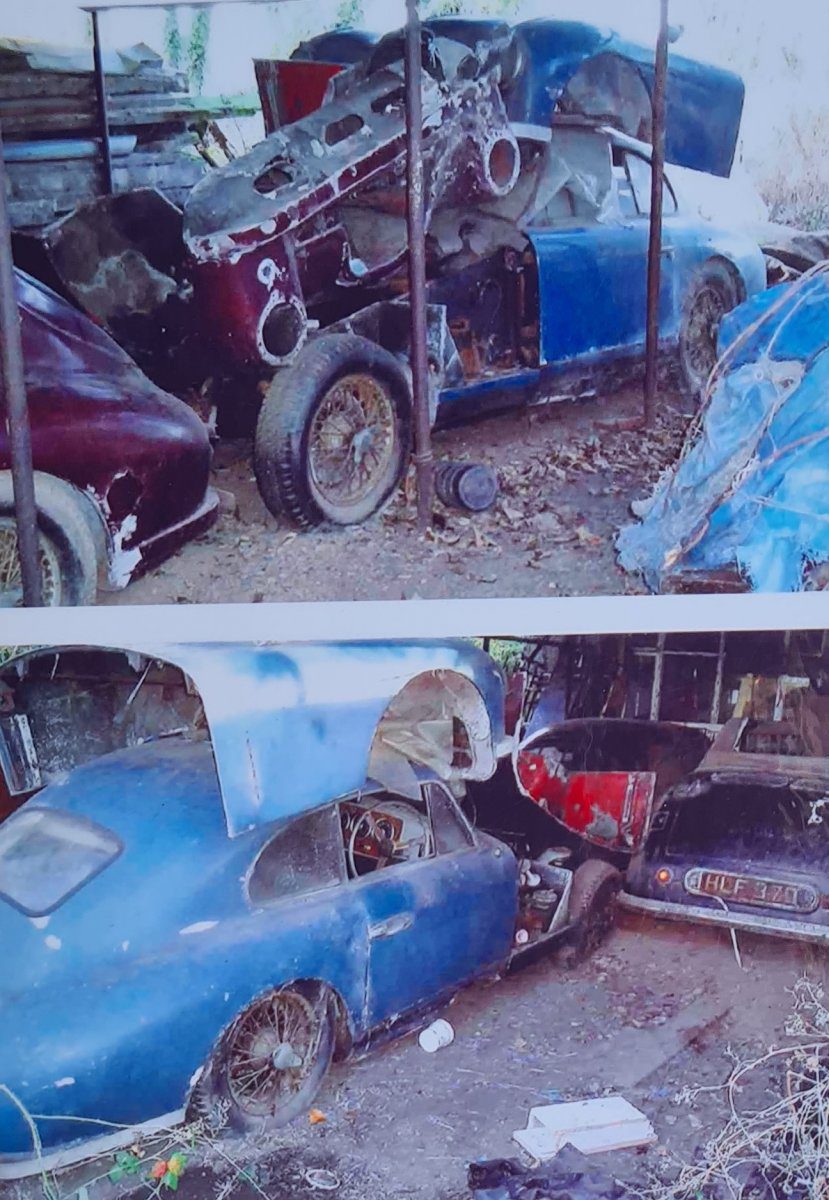 Ce n’était pas même une « barn find » ( sortie de grange) , et pour cause, à l’air libre sous un pauvre appentis, elle a bien eu à souffrir des affres du temps. Certes elle était en bonne compagnie comme on le voit sur cette photo, mais cela n’a rien changé à ses trente longues années d’abandon. Découverte à Portsmouth en 2003, la voiture a été intégralement refaite pour courir. Dotée d’un passeport FIA, elle conserve donc ses freins à tambours, suspensions et directions d’origine ( enfin.. on se comprend !) , la cylindrée du moteur a pu passer à 3L, (Il faudra m’expliquer les subtilités du règlement), ce qui a contribué à faire passer la puissance de 105 ch à … 260 ch.