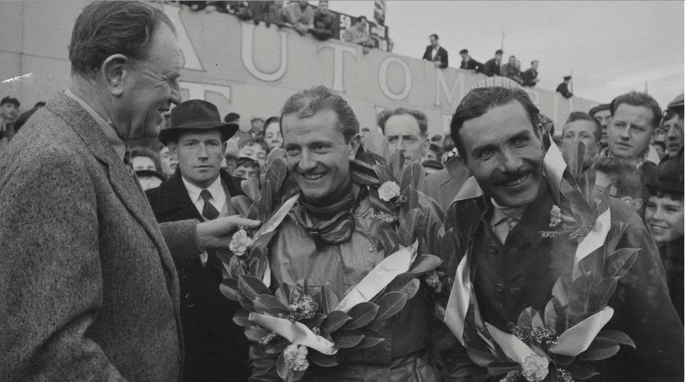 » Je suis parti en avion alors que Trouis me rejoignait en bateau avec sa D.B. A cause d’une grosse tempête sur la Manche, il n’est jamais arrivé. Chez D.B, René Bonnet a été assez froid lorsqu’il m’a vu débarquer seul. Ses deux pilotes officiels étaient Claude Storez et Paul Armagnac. Deux hommes très rapides. Mais Storez qui avait des problèmes de cœur avec sa petite amie, décida de revenir en France. Se retrouvant sans pilote, Bonnet me confia le volant de la D.B officielle au coté de Paul Armagnac. Je n’avais jamais piloté de D.B dont la conduite était particulière et je ne connaissais pas le circuit assez difficile long de 18 km. Je ne devais parcourir qu’un tour sur les 67 de prévus pour respecter le règlement. Mais pendant la course, il s’est mis à pleuvoir des cordes et je me suis retrouvé vraiment dans mon élément. J’adorais la pluie et on ne m’a pas arrêté. J’ai marché très fort et du coup notre D.B a remporté la victoire (Hamilton sur Jaguar au scratch) car c’était une course handicap tenant compte de la vitesse par rapport à la cylindrée et la distance. (La petite D.B bleue de 750 cm3 avait tourné à 136,677 de moyenne sous la pluie !). Une victoire qui a fait beaucoup de bruit à l’époque notamment en France. Voici comment est partie ma carrière de pilote ».