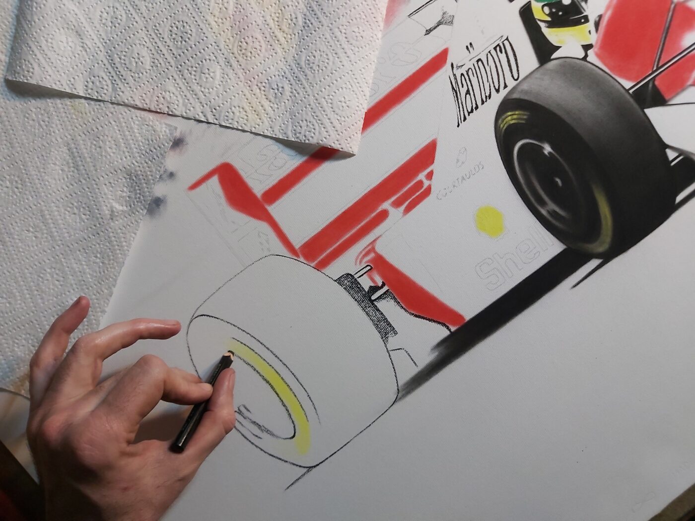 L’artiste a fait les Beaux Arts à Toulon. Voitures de course, chevaux, architecture. Il maîtrise bien entendu le dessin mais a la capacité à faire des flous qui relèvent de l’art dans tout ce qu’il a de plus classique. N’allez pas lui parler du « sfumato » de Léonard de Vinci, sa modestie ne pourrait lie soumettre à la moindre comparaison. Tout est fait à la poudre de pastel et à la pierre noire. Flous comme effets de vitesse sont le résultat de beaucoup de patience et de maîtrise. Et d’un sacré talent. Lien linkedin : https://www.linkedin.com/in/yann-denes-4387a176/recent-activity/all/