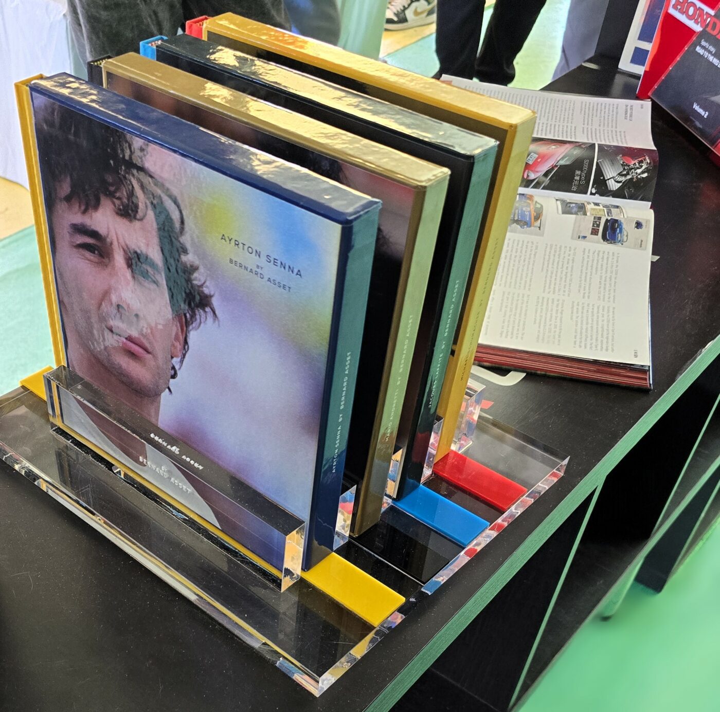 On connait Bernard Asset pour ses photos de F1 et sa galerie de Bandol. Avec Red Runner il a publié quatre livres de photos, dont le dernier sur Senna. Son éditeur présente les quatre ouvrages – Schumacher, Laffite, Andretti, Senna, sur un socle en acrylique. Avis aux amateurs.