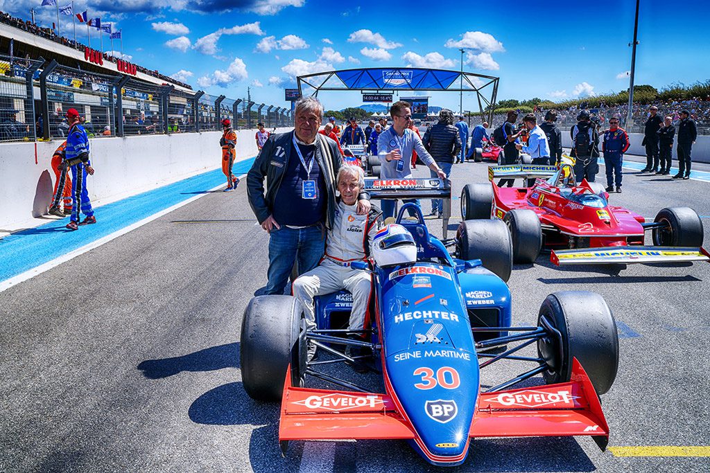 Jean Alesi, Président du circuit Paul Ricard, Laurent Vallery-Masson, Président de HVM et organisateur de cette manifestation étaient au four et au moulin ce week-end. L’un embarqué sur les Ferrari historiques et sur la Porsche 934 pendant les 200 km du GP Historique, l’autre l’affrontant pendant les mêmes 200 km et se frottant aussi au bataillon des furieux de la F3 historique.