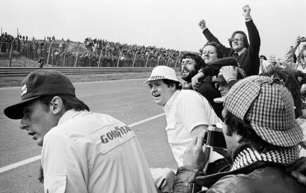 Leur voyagiste, Page and Moy, spécialisé dans les déplacements internationaux de Grand Prix, avait eu le nez creux en subodorant la première victoire d’un Anglais en GP depuis Gethin à Monza en 1971 – Stewart n’étant pas Anglais pour ces Cockneys chevelus à la poitrine moulée par le tee-shirt à l’effigie de l’ourson Hesketh.