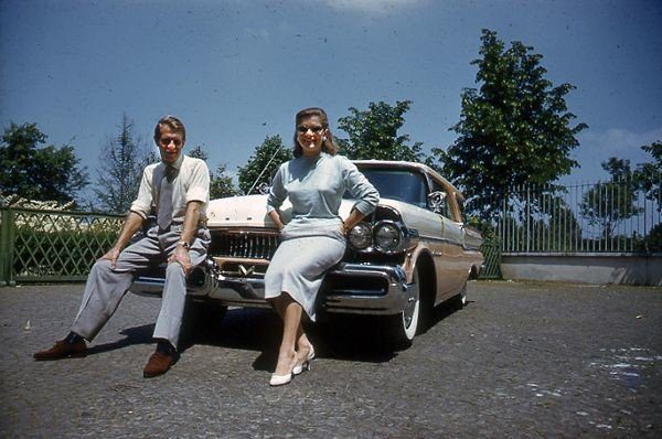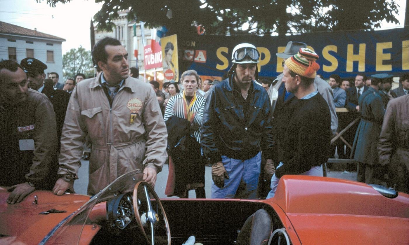 Peter Collins et Alfonso de Portago étaient amis et se ressemblaient beaucoup. L’un comme l’autre était décidé à profiter de la vie au maximum. Alfonso n’était jamais seul, il y avait toujours une fille avec lui et pratiquement jamais la même. Cette photo, c’est la dernière fois que nous avons vu Alfonso. Je ne me souviens plus de la réaction de Peter à sa mort. La course était dangereuse et la mort, sans être courante, n’était pas rare. Les coureurs acceptaient les risques parce que c’était la vie qu’ils aimaient. Un jour Peter a commencé à me dire “s’il devait m‘arriver quelque chose …”, je l’ai arrêté tout de suite. Selon moi, il ne fallait pas aborder ce sujet. Je n’étais pas inquiète. Je savais qu’il n’était pas indestructible, mais je me disais qu’il savait gérer les risques.