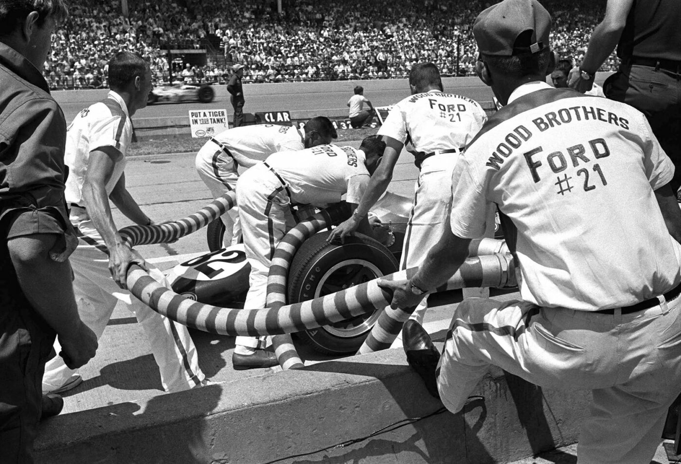 Malgré ces bonnes perspectives, l’ambiance dans le stand Lotus n’était pas des plus détendues avant la course : la pression du résultat pesait clairement et Jim et Colin se sentaient un peu perdus au milieu de cette équipe de mécaniciens qu’ils ne connaissaient pas il y a encore quelques jours : à l’issue des essais, Ford avait jugé un peu verte l’équipe technique de Chapman et imposé au fier patron anglais a real US team, des Sudistes bon teint venant du stock-car ! Les craintes de Colin s’estompèrent quand il vit le sérieux avec lequel ces fameux frères Wood répétaient les manœuvres de ravitaillement à l’aide de tuyaux sur des orifices factices, faisant ainsi le bonheur des journaux locaux qui chantèrent leurs louanges ! Tout était fin prêt et le jour le plus important arriva.