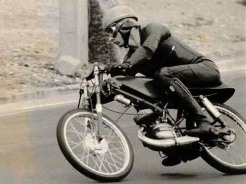 Voilà, pour remettre en perspective cette photo qui m’a rappelé un beau souvenir de JPB. Quant à la première photo en action, elle est plus ancienne (1961 sans doute) et là, JPB court, apparemment déjà à Montlhéry, sur un Itom 50 cm3.
