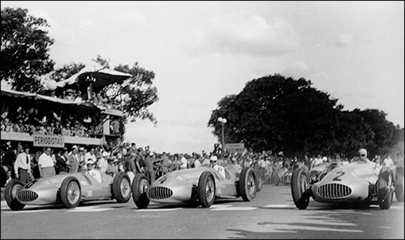 Neubauer avait des consignes strictes venant de la direction de Mercedes : il fallait à la tête de l’équipe un pilote de renom, quelqu’un qui fédèrerait les troupes et attirerait les projecteurs de la gloire sur lui. Et donc sur l’écurie. « Don Alfredo » passa les troupes en revue : les vieilles gloires de la grande époque, les Caracciola, Von Brauchitsch, Stuck ou Lang, étaient trop vieux, ou trop cassés, pour tenir le rôle. Il se tourna alors vers les deux vedettes de chez Alfa Romeo qui s’était partagé les victoires dans le championnat de Formule 1 1950, premier du nom. Liés à la firme milanaise, Nino Farina et Juan Manuel Fangio déclinèrent l’offre. Jusqu’au moment où la fédération argentine demanda à Neubauer de fournir une auto à Fangio car Alfa refusait de faire un déplacement aussi coûteux pour une course mineure. C’est ainsi, que l’Argentin prit part à cette course, escorté par Karl Kling et le vieillissant Hermann Lang.