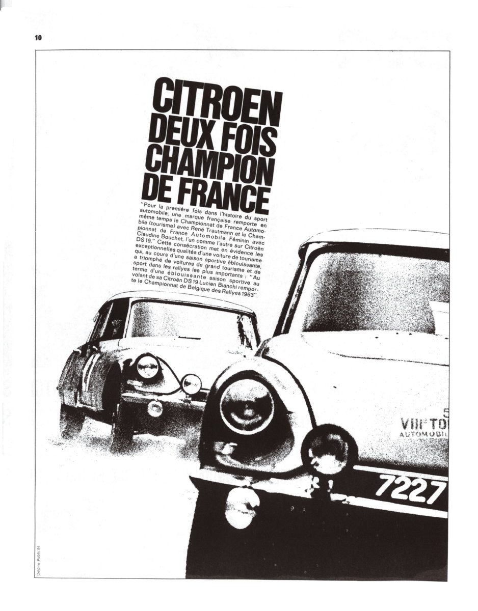 Les victoires en rallyes neigeux incitèrent Citroën à créer une écurie officielle dirigée par René Cotton. Avec davantage de moyens (20 personnes au total !), Citroën put briguer des victoires plus ambitieuses. L’équipe s’étoffa avec des pilotes nordiques habitués à conduire sur la neige qui avaient assimilé depuis longtemps le freinage pied gauche pas usité chez nous. Pauli Toivoinen sur DS (le père du pilote Lancia mort au Tour de corse 1986) se classa 2e du Monte Carlo 1963 mais premier au rallye de Norvège tandis que Trautmann s’adjugeait une victoire au Routes du Nord, au « Lyon Charbo », Critérium Alpin, au Tour de Corse. Les victoires se firent plus rares en 1964 et 1965 à cause de la nouvelle concurrence des agiles Mini Cooper 1300 S, Mustang 4,7 l et des premières berlinettes Alpine 1300 et Lancia Flavia puis Fulvia pilotées par René Trautmann passé à l’ennemi.