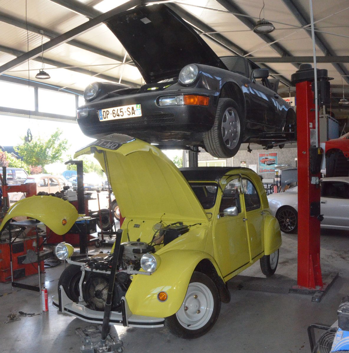 Laurent Champagne a commencé – comme tout le monde, devrions-nous dire – par les modernes, dans une concession. La restauration d’une 2CV, pour son plaisir propre, a aiguisé l’envie de copains qui lui ont demandé « leur » 2CV. De fil en aiguille, le Garage Champagne est devenu incontournable dans l’ancienne corrézienne, surtout depuis que La Montagne (quotidien régional) et France 3 Auvergne s’y sont intéressées de près. Les 35 heures s’y font en trois jours et on y prend tout le temps nécessaire à peaufiner le bel ouvrage : « Il faut du temps pour faire une belle restauration. De toute façon, je ne rends pas la voiture avant d’être sûr qu’elle est bien finie, que le moteur tourne parfaitement, même quand le client me tanne pour l’avoir plus tôt – et même s’il m’en veut un peu (rires). Je veux être satisfait de mon travail, et je veux que le client soit satisfait. Sinon, personne n’est heureux ».