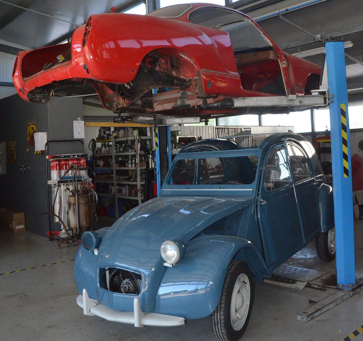 La restauration est l’activité principale du lieu, avec l’entretien et la réparation. Tout est fait sur place en mécanique et carrosserie, seule la sellerie est sous-traitée, chez un professionnel de Brive à la réputation clairement établie : « On fait juste la sellerie des Coccinelles ou des 2CV parce que ça reste simple. La couture du cuir, c’est un vrai métier et on n’a ici ni les outils ni la compétence pour ça. Vous faites une belle carrosserie, une belle mécanique et vous installez une sellerie moyenne, c’est pas du bon travail ».