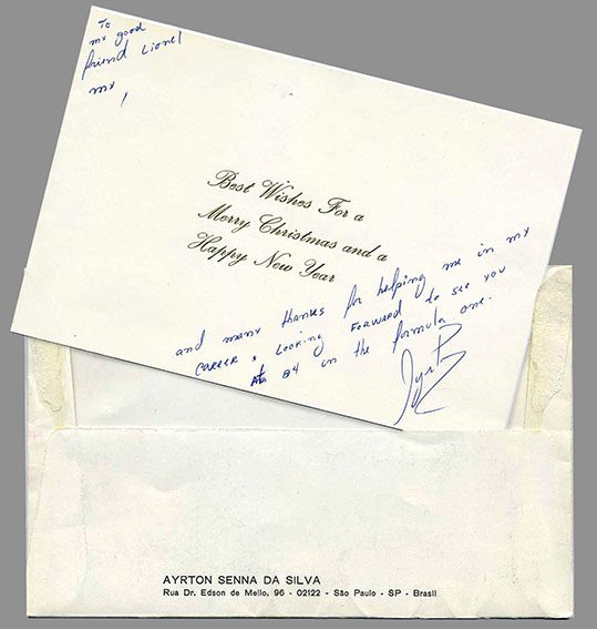 (2) Une fois ses deux championnats de Formule Ford 1600 gagnés en 1981, Senna avait du céder à la pression de son père qui considérait la course comme un « passe-temps formateur en vue d’une carrière commerciale » et qui désirait que son fils rentre définitivement au Brésil pour entamer l’apprentissage qui le verrait un jour reprendre les rênes de l’entreprise familiale. Ayrton resta quelques mois dans cette situation inconfortable avant de déclarer à son père qu’il ne pouvait tout simplement pas abandonner la course. Et il fut au départ du championnat de Formule Ford 2000 en 1982.