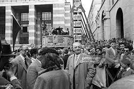 Cela se passe sur la mythique Place della Vittoria immortalisée par la légendaire photo de Bernard Cahier ou l’on voit Enzo Ferrari au milieu de la foule au départ des 1000 Miglia.