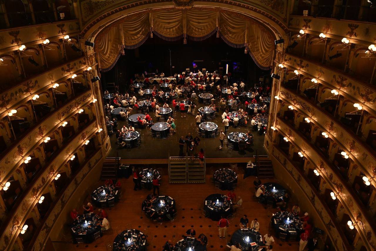 La première étape Brescia – Cervia passe par les bords du lac de Garde avec une halte pour diner à Ferrara, pas dans un Autogrill, non dans le Teatro Municipal, il y a pire comme endroit, mais il ne faut pas s’attarder ni taper dans la grappa il reste presque 120 km à faire pour rejoindre la station balnéaire sur l’Adriatique, départ à 20h30, les premiers arriveront vers 22h à Cervia.