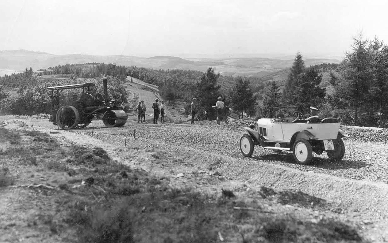 Les conditions atmosphériques se firent rudes durant l’hiver 1926-27, mais grâce à une excellente organisation et des primes motivantes pour les ouvriers (2), la direction des travaux annonça que les délais seraient respectés. Afin de convaincre les sceptiques, on fit venir en septembre 1926 le gratin de la presse étrangère stationné en Allemagne. Les journalistes furent trimbalés tout le long du trajet sur une piste pas encore goudronnée, mais ils purent ainsi dès le lendemain informer leurs lecteurs que ce nouveau circuit était réellement prometteur et dépasserait tout ce qui existait en Europe. Relayant ces nouvelles, la Commission Sportive Internationale commença à faire la publicité de ce fameux Nürburgring qui ouvrirait ses portes les 11 et 12 juin 1927.