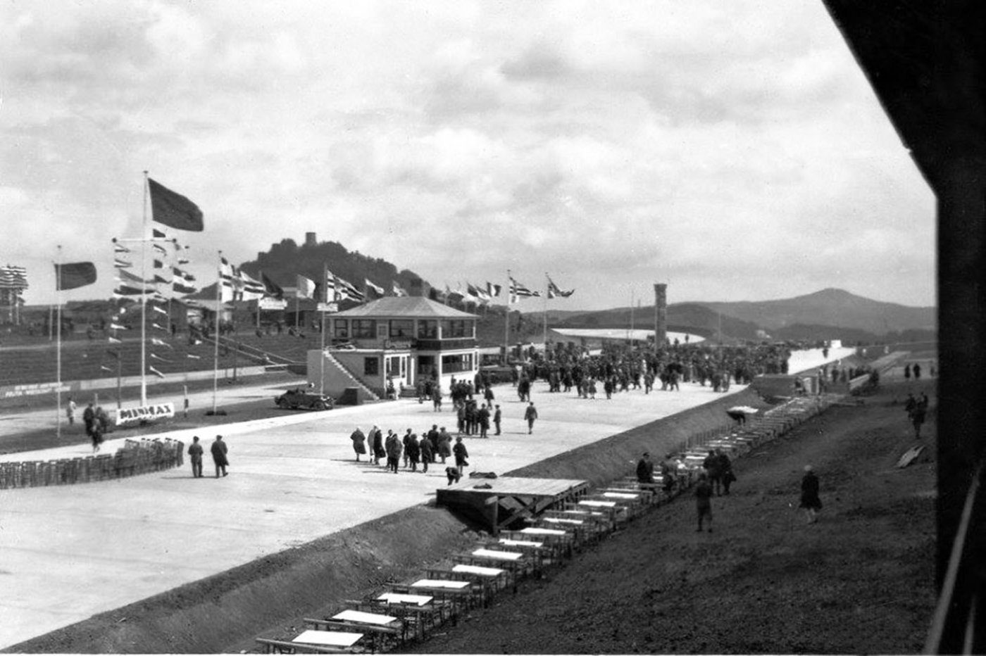 La première pierre des bâtiments qui borderaient la ligne de départ et d’arrivée fut posée le 27 septembre et une maquette du site envoyée à Berlin. Restait néanmoins un point important à éclaircir : le nom du futur circuit. Jusqu’à présent, on était resté sur « Circuit d’essais et de courses en montagne », mais tout le monde s’accordait pour reconnaître que c’était trop long et peu attirant. Une fois encore, un concours fut lancé, et le gagnant fut le président du gouvernement honoraire de Rhénanie, le Dr Kruse : puisque le tracé tournerait autour des ruines du Nürburg, pourquoi ne pas l’appeler Nürburgring ?