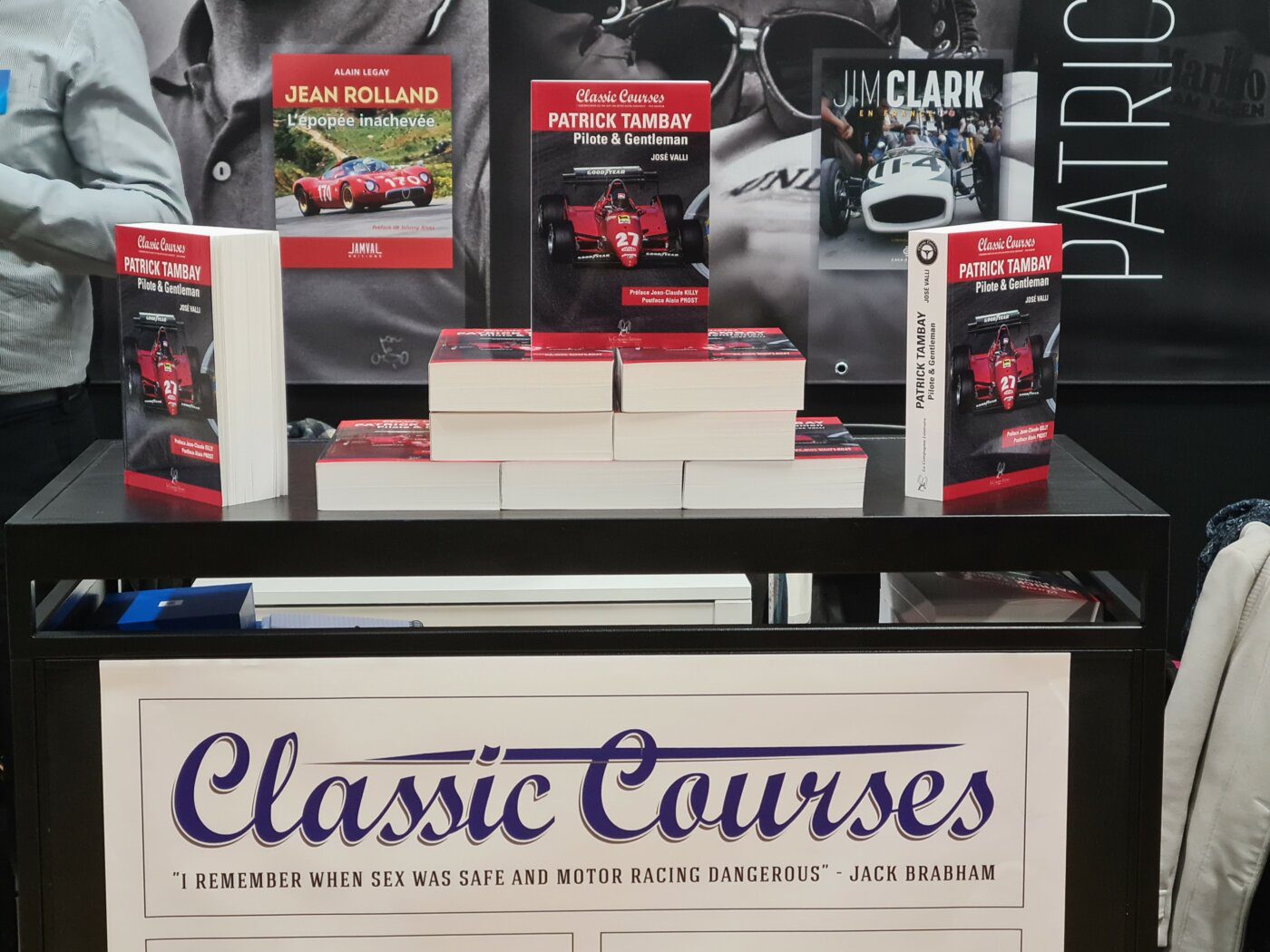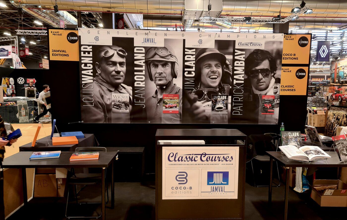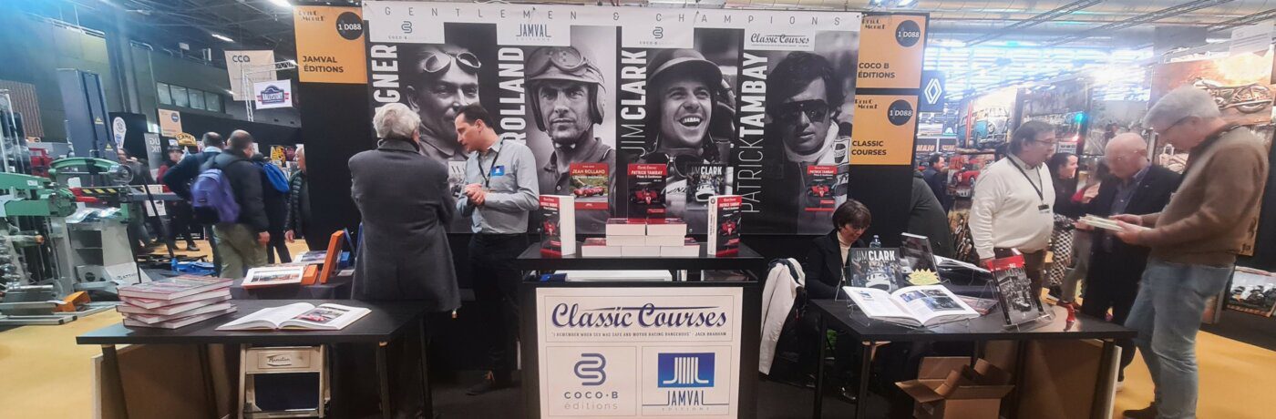 Classic Courses s’est donc joint à Philippe Guyé qui préside aux destinées de Jamval éditions et Dominique Vivent de Coco B Editions. Tandis que notre actualité littéraire remonte déjà à plus d’un an, avec la biographie de notre cher Patrick Tambay, nos co-exposants étaient beaucoup plus fournis.