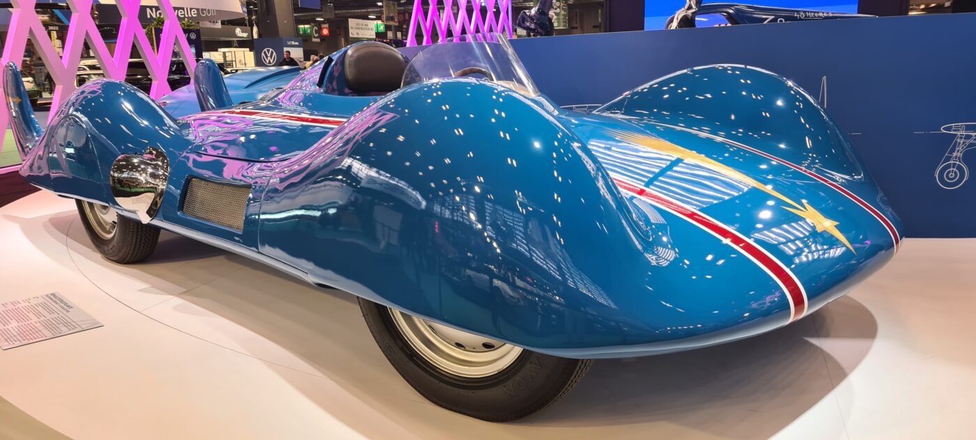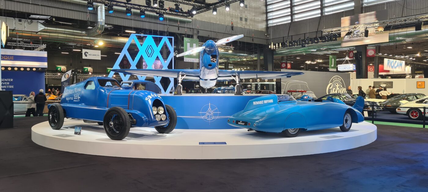 Toutefois concernant Renault, je pense qu’ils se font pardonner avec ce stand leurs errements passés. Ils parlent de patrimoine. Montrent des maquettes de R5 Electriques et un malheureux SUV à piles surnommé le Rafale. J’y vois une certaine forme d’humour. Pourquoi pas Redoutable, il doit peser quatre fois le poids du Caudron ? Conforté dans cette idée par la présence des baby-foots. Dans le style, « Bon on fait une pause en attendant que ce délire électrique prenne fin ». Et ils nous montrent sur un podium de superbes engins de vitesse, de record aux couleurs bleues de notre pays. Totalement incorrects politiquement ! Quant à la nouvelle dénomination Rnlt, c’est sans doute pour nous donner du grain à moudre. Renault Classic pourtant, ici ça nous plaisait.