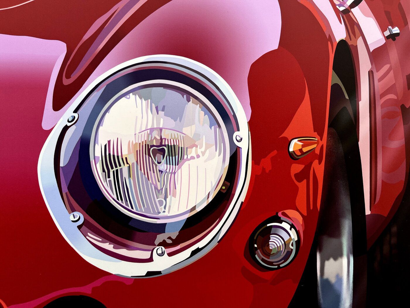 Dans l’accueillant stand du Club Ferrari France, lors de Sport et Collection, hors déguster du champagne, on rencontre des artistes, Olivier Boiteux-Filardi en est un. Autodidacte et tombé dans la marmite des belles autos italiennes, il peint numériquement des tableaux grand format. Moi l’ancien, j’avoue que j’avais un peu de mal à comprendre l’intérêt de peindre une photo à l’ordinateur, lorsque faisant le rapprochement avec la musique, je compris subitement que nous avions changé d’époque et que l’informatique aujourd’hui permet aux artistes de s’exprimer librement et son travail m’enchanta brusquement.