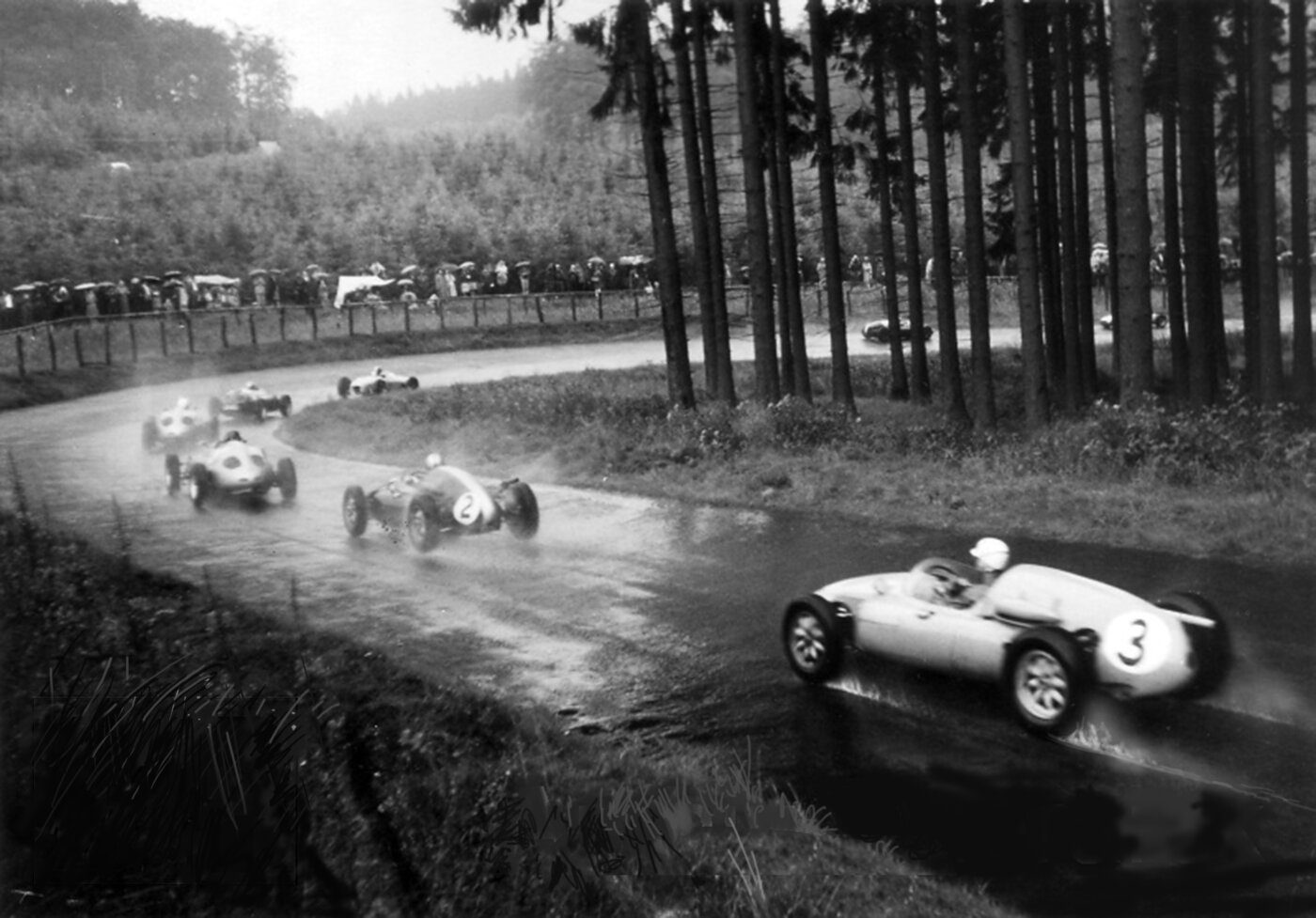 Quelle idée passa par la tête des autorités allemandes pour organiser le Grand Prix d’Allemagne 1960 sur la boucle sud du Nürburgring, la Südschleife, qui plus est en F2 ? La course fut disputée hors-championnat, devant une foule clairsemée et par un véritable temps de cochon. Mais deux Porsche passèrent les premières sous le drapeau à damiers, et c’est là que l’on doit chercher la signification de ce grand prix pour le moins bizarre.