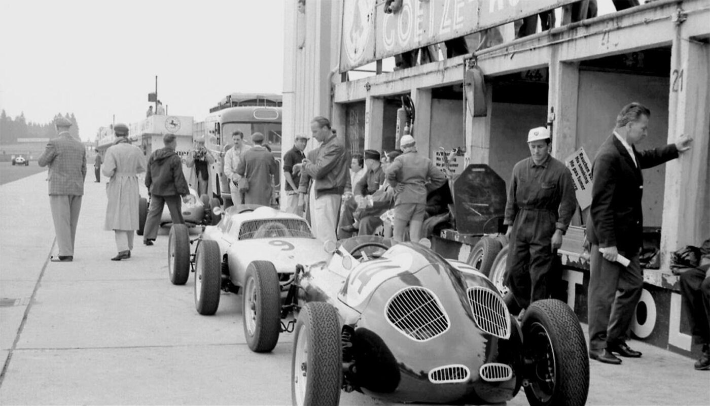 La marque de Stuttgart luttait âprement contre Cooper dans ce championnat. Elle avait perdu les trois premières manches à Syracuse, Bruxelles et Pau, mais s’était relancée fin avril à Aintree grâce à la victoire de Stirling Moss (1). Le Grand Prix dans la banlieue de Stuttgart ne comptait pas pour le titre, mais c’était un rendez-vous de prestige à quelques encablures de l’usine Porsche. Malgré un soleil éclatant ce jour-là, le triomphe de la 246P de Wolfgang Von Trips devant les Porsche de Hans Herrmann et Jo Bonnier jeta un énorme nuage noir sur toute la communauté germanique. Le Grand Prix d’Allemagne à venir une semaine plus tard constituait donc une occasion de revanche inespérée.